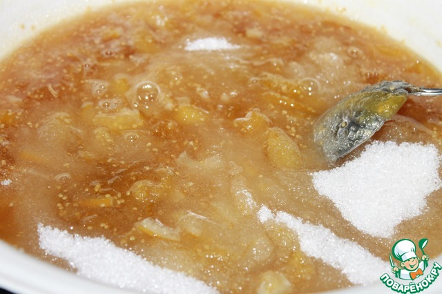 Дать остыть, провести эту процедуру ещё два раза, каждый раз давая конфитюру полностью остыть. В третий раз после 10-минутного кипения выключить огонь, добавить в варенье оставшийся сахар 0,5 кг, перемешать до полного его растворения, больше не кипятить!!!