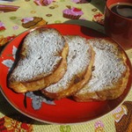 Выкладываем, посыпаем сахарной пудрой и вкусный, сытный завтрак готов!