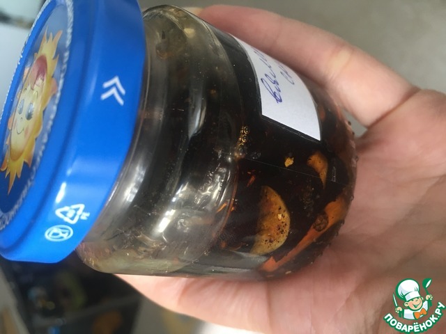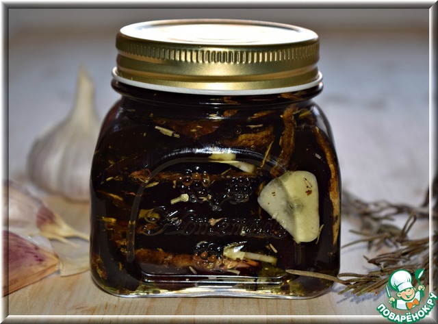 Заливаем наш деликатес очень горячим, но не кипящим маслом. Я его разогреваю в микроволновке около 2-3 минут.