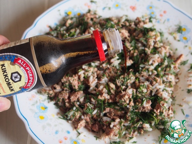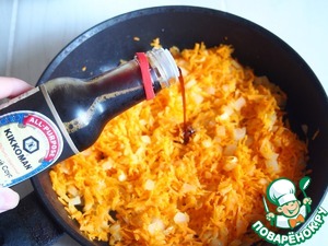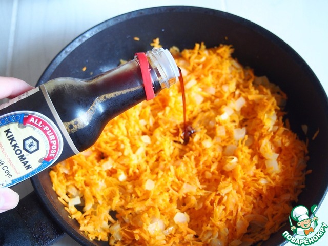 Затем добавить соевый соус Kikkoman, хорошо перемешать.