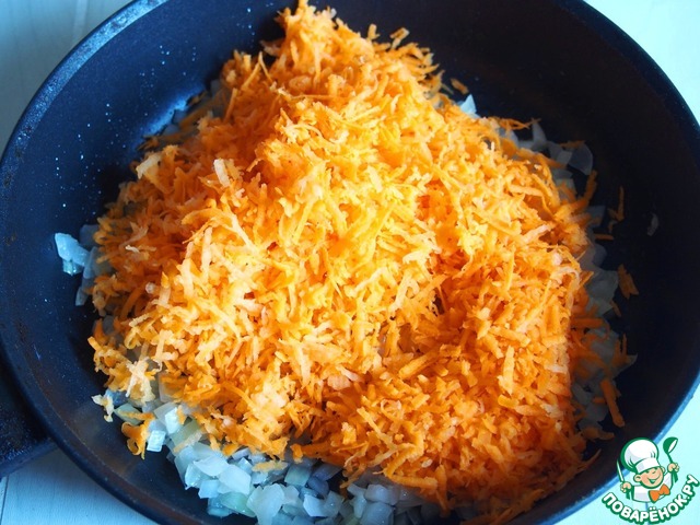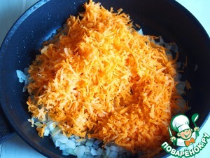 Морковь почистить, помыть, натереть на средней терке и добавить к луку. Обжарить в течении 2-3 минут.