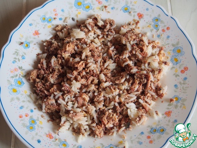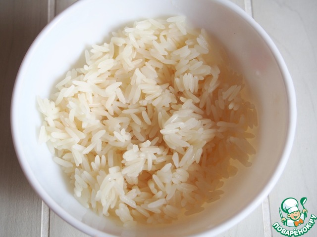Пока подходит тесто, подготовим начинку. Отварить рис.