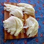 Отдельно насыпем муку в тарелку. И каждую половинку "шницеля" хорошенько обвалакиваем. Сначала в яйце, потом в муке. -