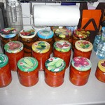 Добавить уксус и нарезанный болгарский перец и варить еще 15 минут. Разложить по банкам и закатать крышками.
