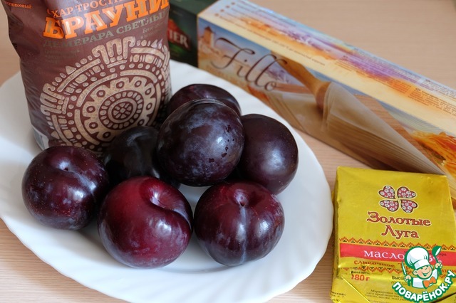 Ингредиенты для «Пирог из теста фило со сливами»: