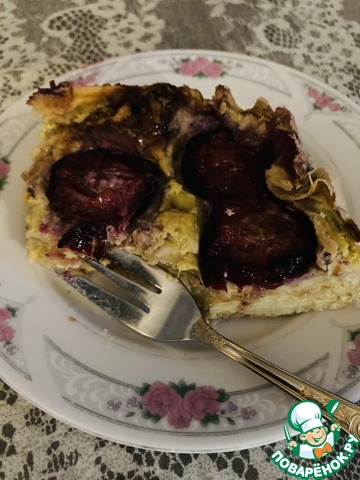 Вкусный пирог из теста фило со свежими сливами. Пирог соберет за чашкой чая и родных и друзей.