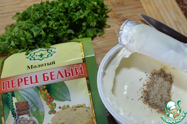 Петрушку вымыть, обсушить, нарезать. Смешать сметану, петрушку и белый перец.