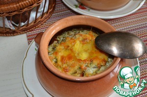Разложить грибы с луком по порционным горшочкам или в одну жаропрочную емкость.