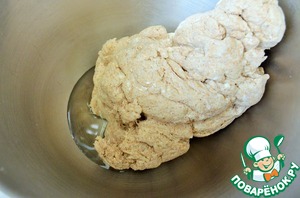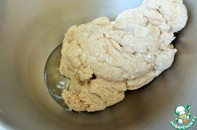 Добавить масло и замесить тесто - 5 минут на средней скорости.