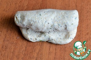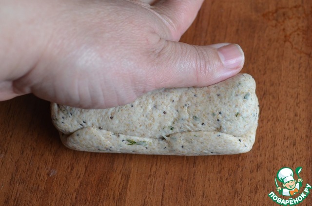 Прокатать для лучшего соединения, формуя длинную булочку.