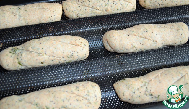 Выложить на багетницу или противень для расстойки, на 30 минут. Духовку включить. Нагреть до 180 градусов.
