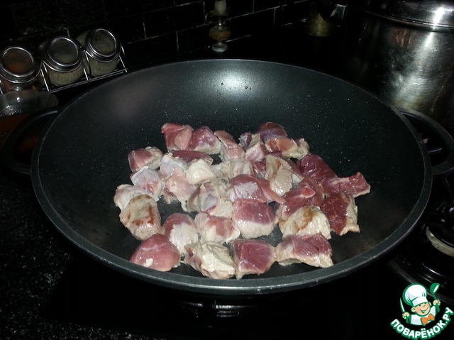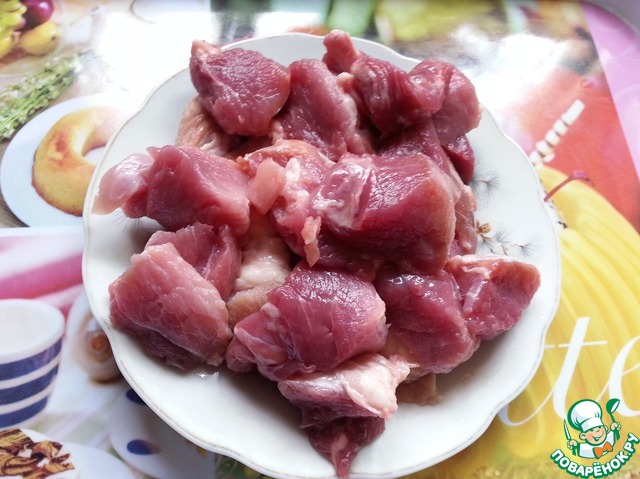 - Свинина (по рецепту меньше, но я добавила от себя, мы мяско любим) — 1 кг