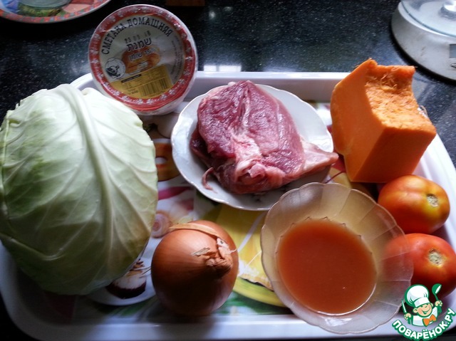 Ингредиенты для «Тушеная капуста с тыквой и свининой»: