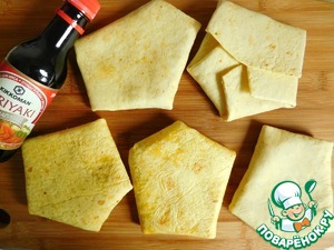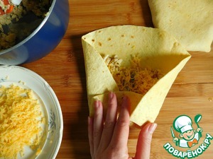... и заканчиваем с предыдущей. Заворачиваем начинку, складывая тортилью любым удобным способом.