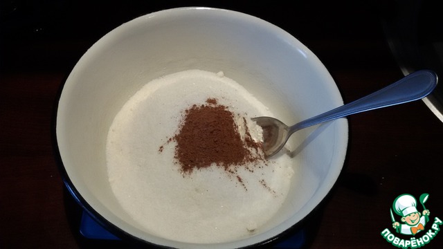 • Смешать сухие ингридиенты: муку, соль, сахар, корицу и разрыхлитель. P.S. Часть муки (примерно 1/3) можно заменить на овсяную.