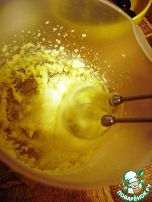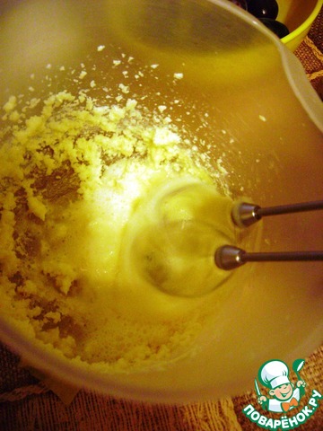 Размягченное масло взбить с сахаром. Добавить по одному яйца, не прекращая взбивать смесь до полной однородности.