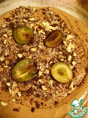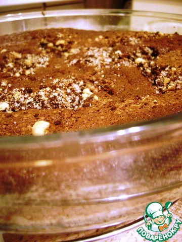 Для посыпки перетереть рубленные орехи с сахаром и крошками подсохшего шоколадного бисквита (или печенья).