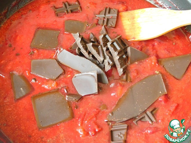 Сразу добавляем поломанный на кусочки горький шоколад.