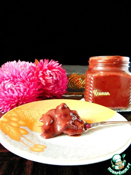Кислая слива и горький шоколад, а всё вместе-это джем-десерт, по консистенции почти ганаш. Постояв в холодильнике он становится настолько густым, что им можно начинить, например, домашние конфеты. И именно такими конфетами я хочу угостить девочек, с которыми я счастлива быть в компании на Поединках от Kikkoman!
