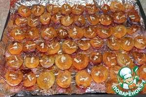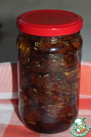 Но они всё же получились не очень высушенными. Тут уже дело вкуса, который, кстати, понравился не всем. Помидоры по этому же рецепту пользуются гораздо бОльшим успехом.. Но это уже другая история)