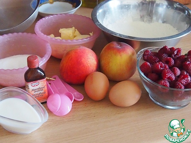 Ингредиенты для «Перевернутый персиковый пирог с малиной»: