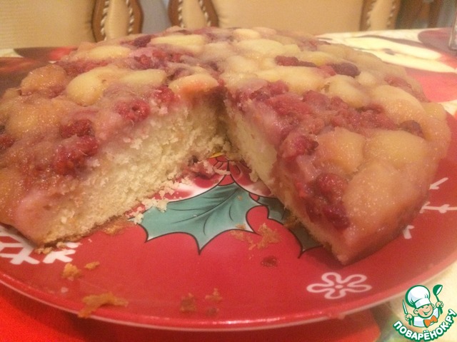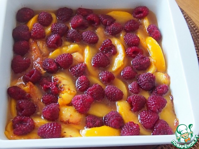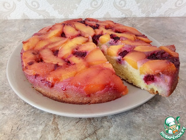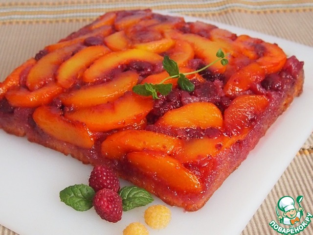 Рецепт «Перевернутый персиковый пирог с малиной»: