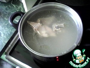 Берём 3-х литровую кастрюлю, кладем 2 кусочка говядины на кости средних размеров, наливаем холодную воду примерно 2,8 л. Подсаливаем, доводим до кипения, убавляем огонь, постоянно снимаем пену. Чтобы был бульон наваристый, варим 1-1,5 часа