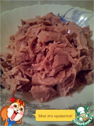 • Готовую голень вынуть, остудить и разобрать на волокна. Бульон процедить. Морковь и лук из бульона нам больше не понадобятся.