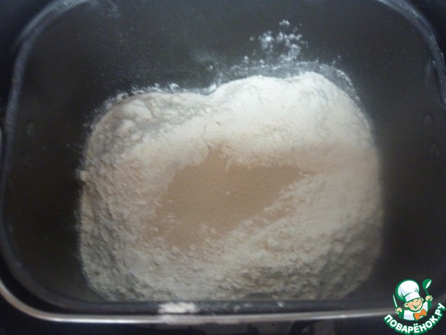 Все виды муки и последним дрожжи. Ставим соответствующую программу ( у меня цельнозерновой хлеб, средняя корочка, вес 1000г)