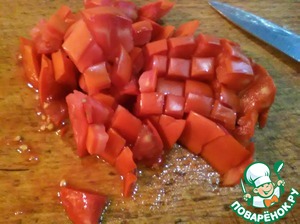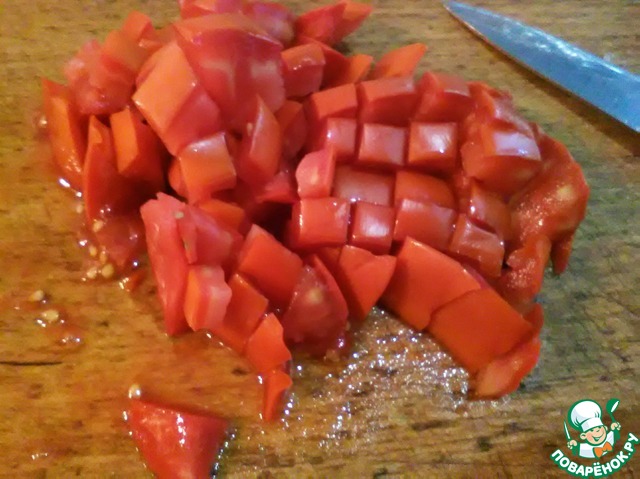 Пока лук готовится, моем и нарезаем мелко помидоры. Можете их измельчить в комбайне, я же предпочитаю их резать.