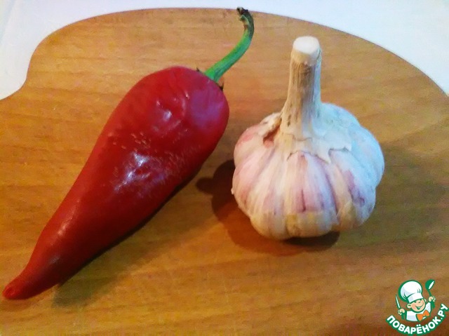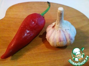Чистим чеснок и мелко нарезаем жгучий перец, предварительно удалив семена и плодоножку.