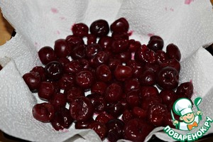 Если вы используете замороженную вишню, то её необходимо полностью разморозить и обсушить на бумажном полотенце. (лишняя жидкость не нужна)