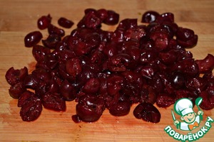 Вишню разрезать на половинки. Если ягода мелкая, то этот шаг пропускаем.