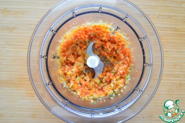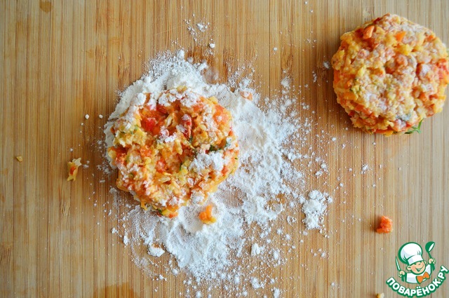 Все овощи измельчите при помощи мясорубки или комбайна, добавьте соль по вкусу, перец, половину муки и хорошо перемешайте массу.