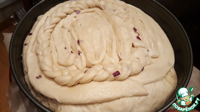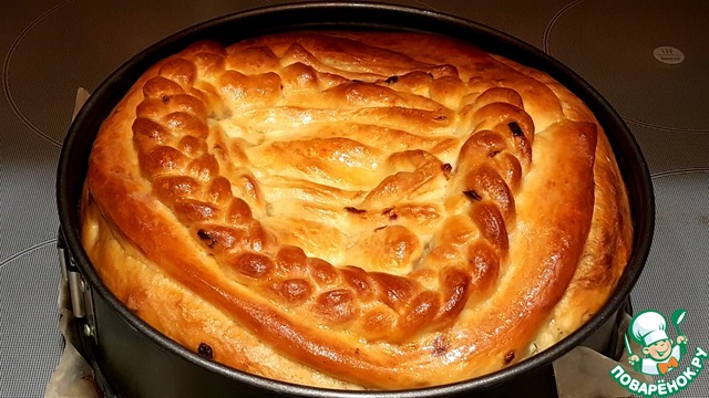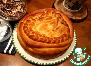 Скрепляем бортики и закрываем верх пирога оставшимся тестом по Вашему настроению и фантазии. Смазываем пирог смесью яйца с молоком и отправляем в разогретую до 180° духовку на 35-40 минут. Ориентируйтесь на Вашу духовку!!!
