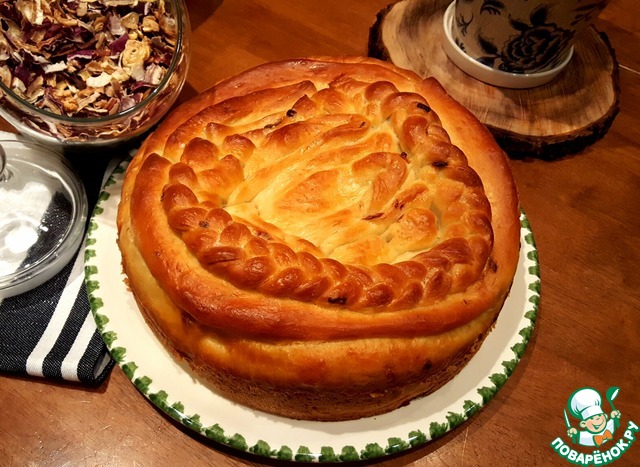 Воздушный пирог на дрожжевом тесте с начинкой из тушёной капусты с укропом, отварным филе грудки индейки, зелёным луком и варёными яйцами. Сытно, но не жирно, вкусно и вполне презентабельно!!! P.S. А назвала я пирог в честь нашего замечательного гостя, Ильки, как его называет мама. К его приезду и был придуман и испечён такой пирог.