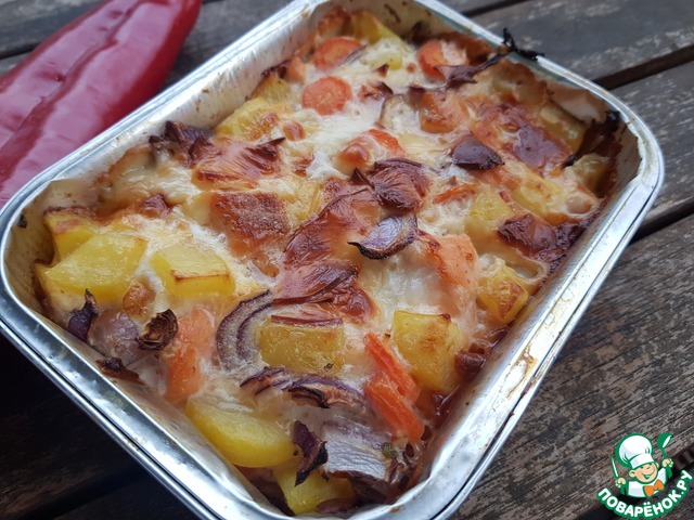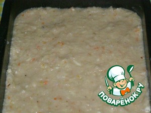 И получившимся фаршем заполнить форму для выпечки (предварительно смазанную сливочным маслом).