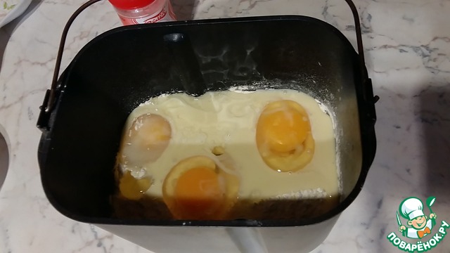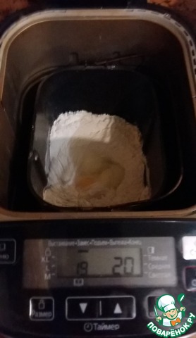 Так как тесто должно получиться консистенции не тугого пельменного, для его замеса я пользуюсь хлебопечкой. Но можно его и приготовить в ручную. Просеиваем муку, добавляем яйца, сгущённое молоко.
