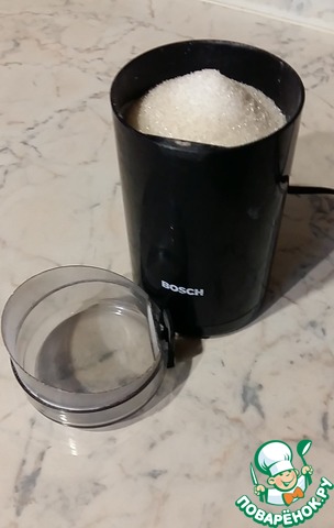 Пока тесто готовиться, в кофемолке из сахара получаем сахарную пудру.