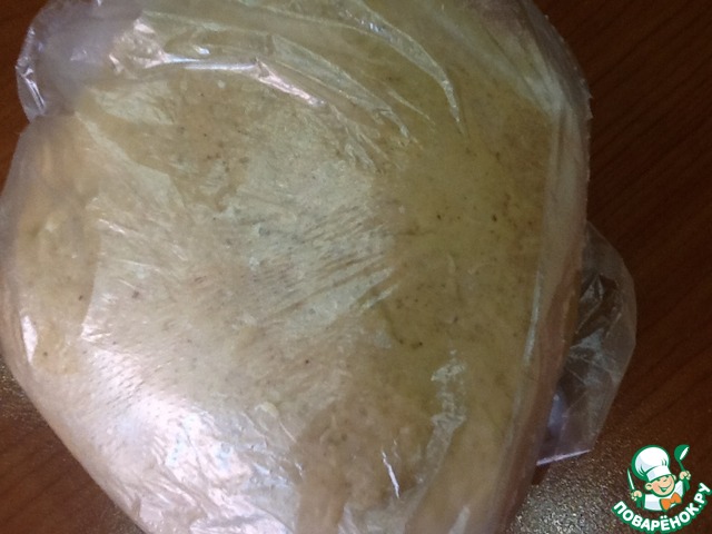 Затем добавляем потихоньку нашу муку со специями и вымешиваем мягкое, липкое тесто. Кладем его в пакет и убираем в холодильник на 4-8 часов.