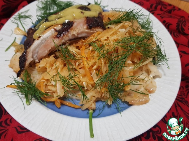 Рецепт «Медовые рeбрышки с тушеной кислой капустой»: