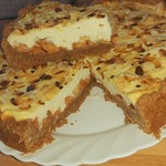 Позволила себе немного отсебятины - шоколад не добавляла ибо дети малые. В тесто добавила разрыхлителя 1 ч.л. - оно было достаточно мягким. Сверху посЫпала грецкими орехами. Миндальных лепестков не случиось в хозяйстве.