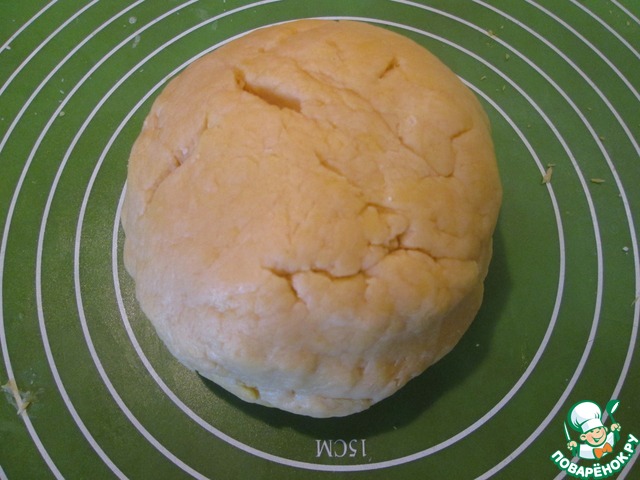 Раскатать тесто на присыпанной мукой поверхности и уложить в форму, сделав бортики.