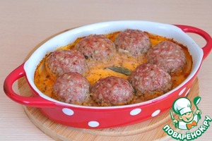 Добавить приготовленную смесь в форму с тефтелями, добавить лавровый лист.