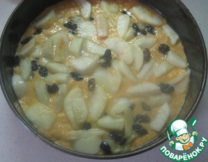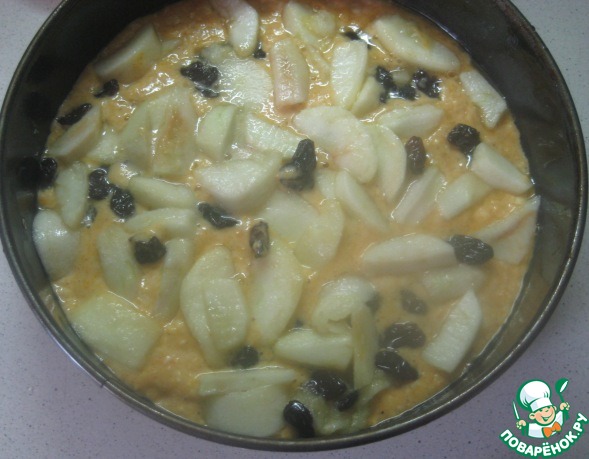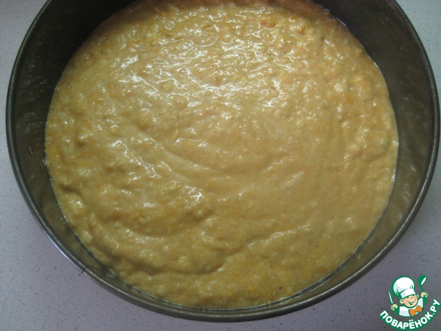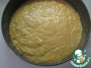 В форму для выпечки (диаметр 20 см) выливаем тесто, разравниваем.