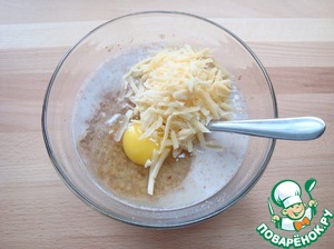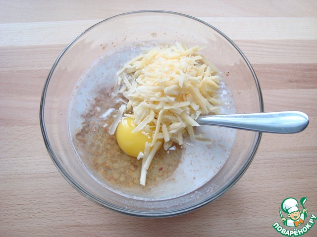 Добавляем сахар, соль, яйцо и натёртый сыр. Всё перемешиваем. Если вы готовите себе как гарнир к котлетке или колбаски, то сахар можно упустить. Я маленькая любила сладкую кашу, поэтому сделала с сахаром.
