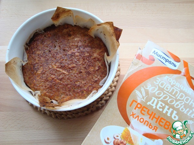 Каша на молоке с гречневыми хлопьями, запечённая с сыром и сливочным маслом на завтрак. Это очень вкусно и детки оценят это.