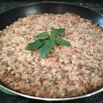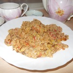 Вот как-то раз, после вечерней учёбы, я решила забежать к Наташе в гости в общагу. Захожу и вижу: сидят три девочки за столом и из большой сковороды что-то с огромным аппетитом уплетают. Пригласили меня за стол попробовать, на первый взгляд, какое-то невзрачное месиво, но с приятным, многообещающим ароматом. Попробовав, я очень удивилась, что блюдо, не внушающее доверие, оказалось таким вкусным!