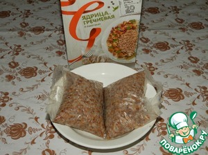 Ядрицу гречневую в пакетах отварить в подсоленной воде. Воду сцедить.