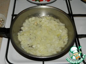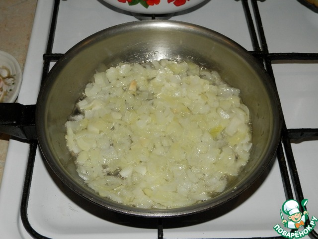 Пока варится гречка, приготовим заправку: лук почистить и нарезать кусочками. Слегка обжарить на растительном масле.